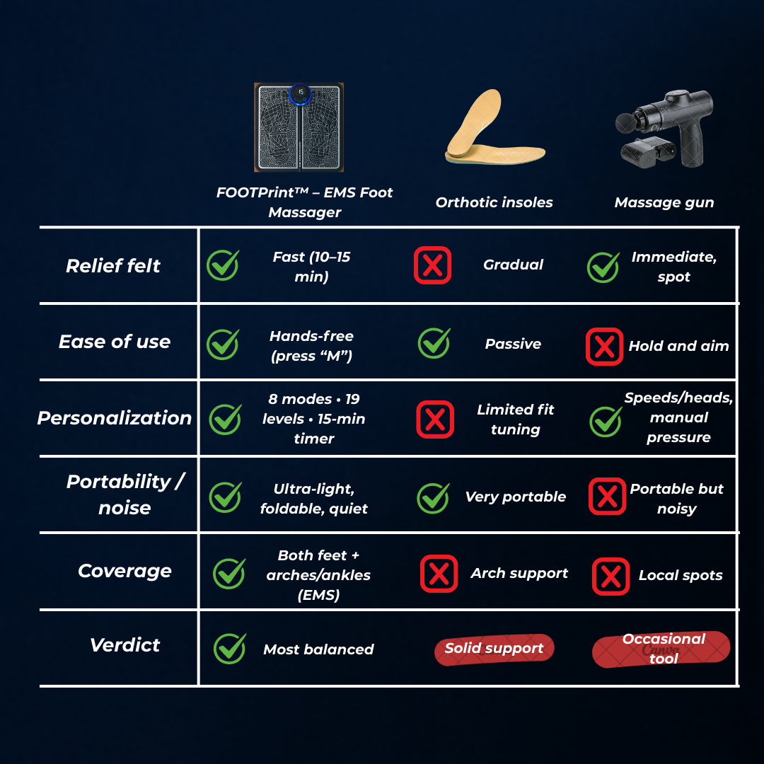 En envoyant de douces impulsions électriques pour stimuler les nerfs et les muscles, il contribue à améliorer la circulation, à réduire la raideur et à favoriser une meilleure mobilité du pied.